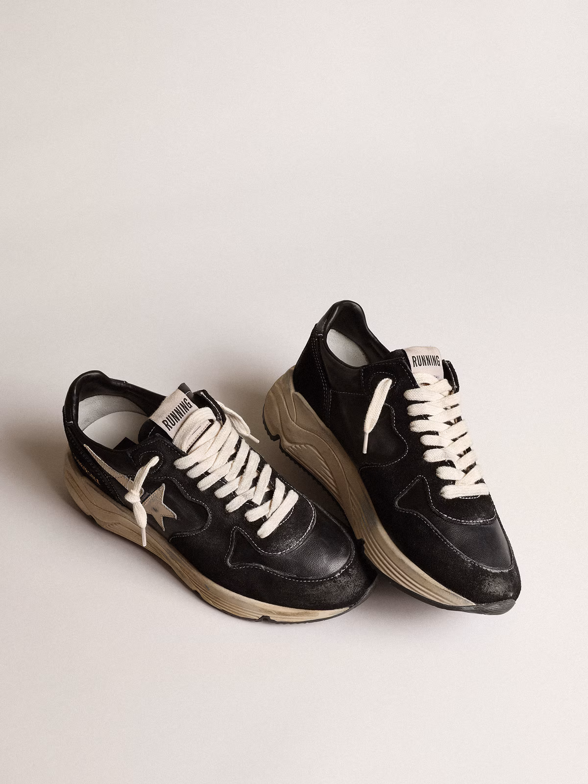 Siyah nappa ve süet kumaştan yapılmış Running Sole Woman