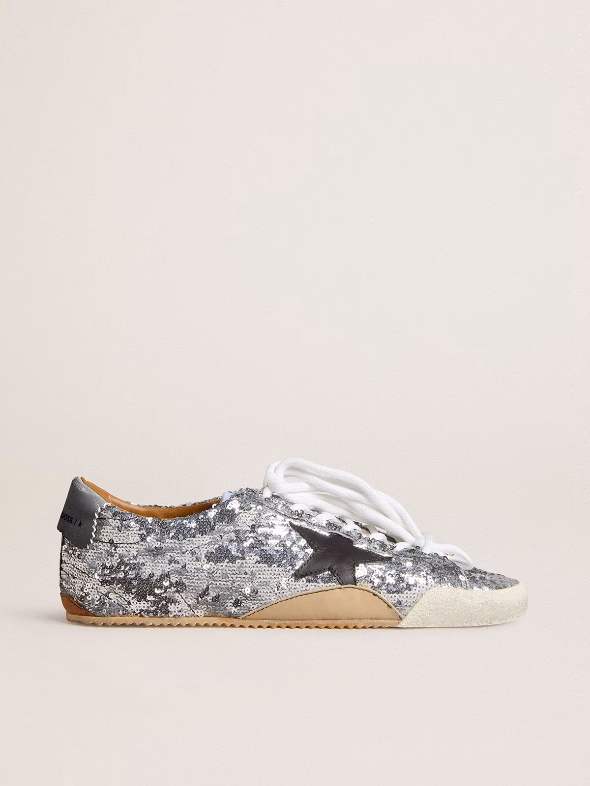 Gümüş pullu üst kısma sahip bu kadın modeli, beyaz burun kısmı, siyah deri yıldızı ve arkada yer alan parlak kırmızı deri ek parçasıyla öne çıkıyor. Ve son olarak sağ ayakkabıda bej deri topuk kısmı ve beyaz bağcıklar, sol ayakkabıda ise siyah bağcıklar. Bu True-Star, yeni stil kombinasyonlarını deneyebilmeniz için ekstra çift bağcık içerir.
