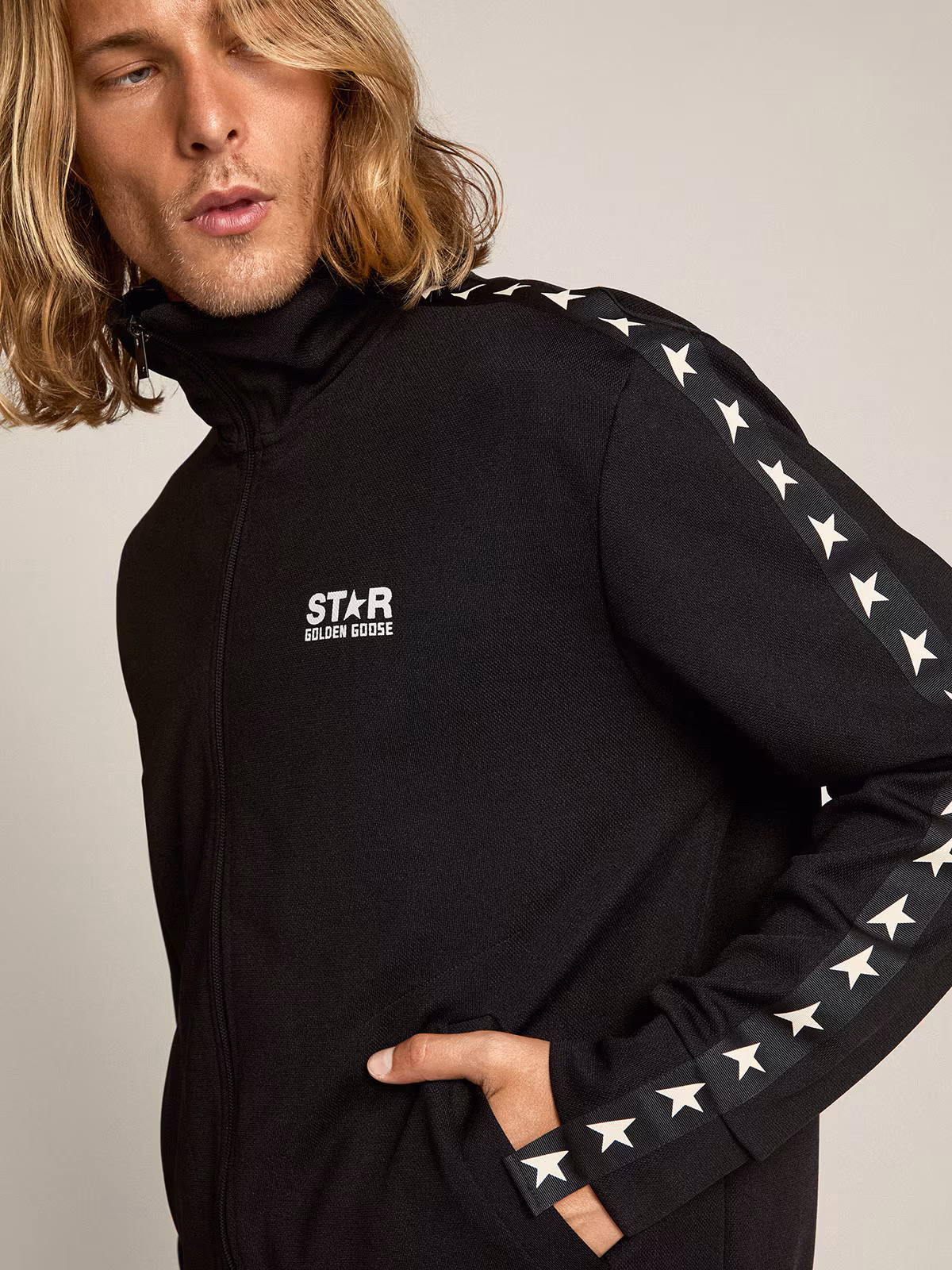 Erkek Siyah Fermuarlı Kapşonlu Sweatshirt