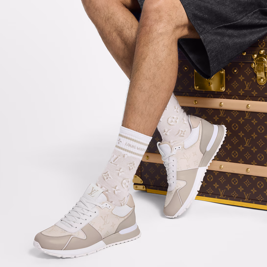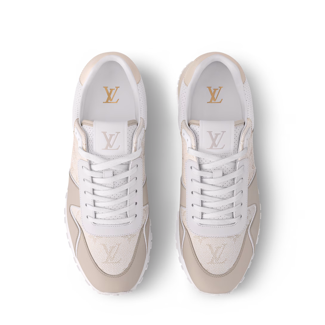 Run Away spor ayakkabısının bu versiyonu, Monogram dokulu dana derisini pürüzsüz dana derisi süslemeyle birleştiriyor. İnce renk paleti ve malzemelerin kombinasyonu, koşu ayakkabılarından ilham alan bu spor ayakkabının şık tasarımını tamamlıyor. El yapımı deri süslemeli ve metal plakalı iki tonlu kauçuk dış tabanla tamamlanıyor.