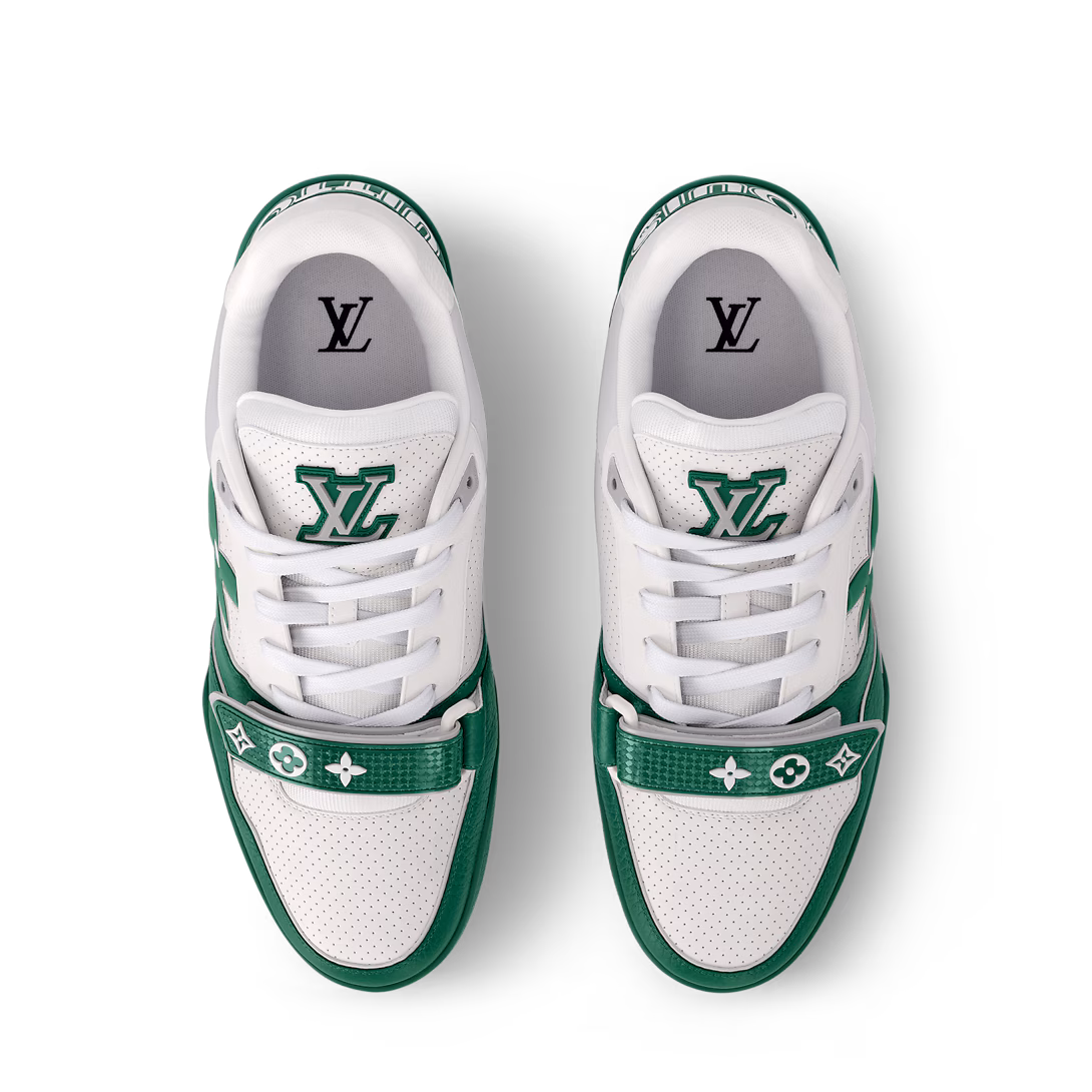 Bu sezon ikonik LV Trainer spor ayakkabısı, incecik deliklerle süslenmiş pürüzsüz dana derisiyle yeniden yorumlanıyor. Vintage basketbol spor ayakkabılarından ilham alan bu model, özenle tasarlanmış üst kısmı ve çok sayıda imza detayıyla dikkat çekiyor. Bunlar arasında yanda bir Monogram Flower ve arkada asimetrik bir Louis and Vuitton imzası yer alıyor.