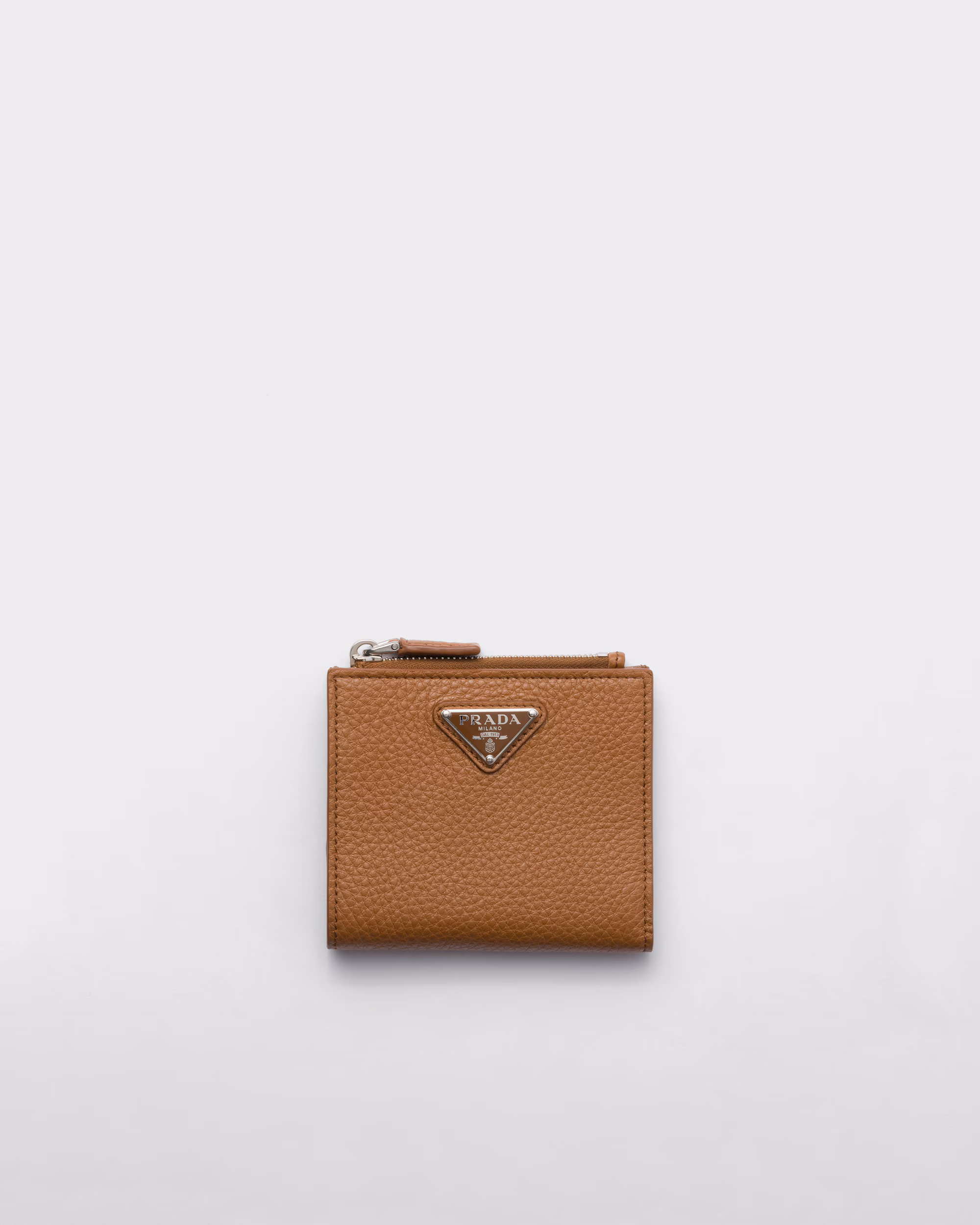 İç cepleri ve kart yuvaları bulunan bu deri cüzdan, şık çizgileri ve ikonik emaye metal üçgen logosuyla öne çıkıyor.